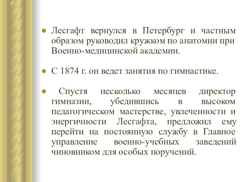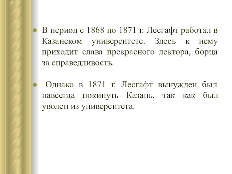 В период с 1868 по 1871 г. Лесгафт работал в Казанском