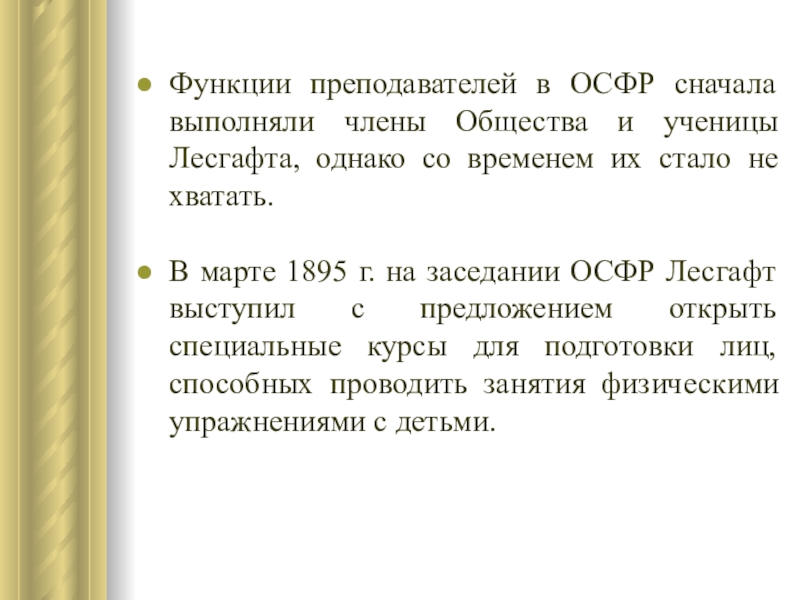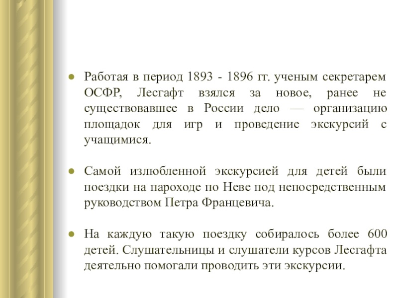Работая в период 1893 - 1896 гг. ученым секретарем ОСФР, Лесгафт