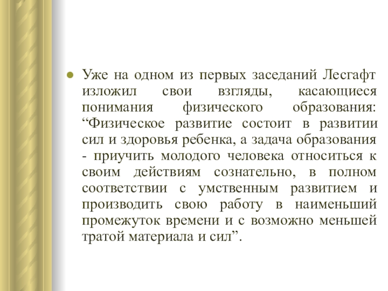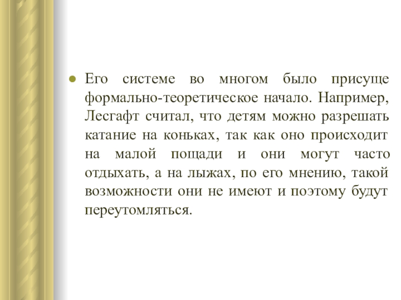 Его системе во многом было присуще формально-теоретическое начало. Например, Лесгафт считал,