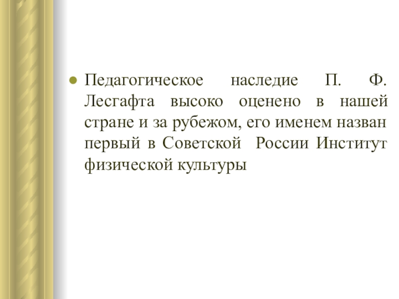Педагогическое наследие П. Ф. Лесгафта высоко оценено в нашей стране и