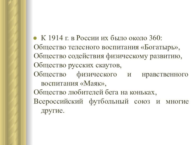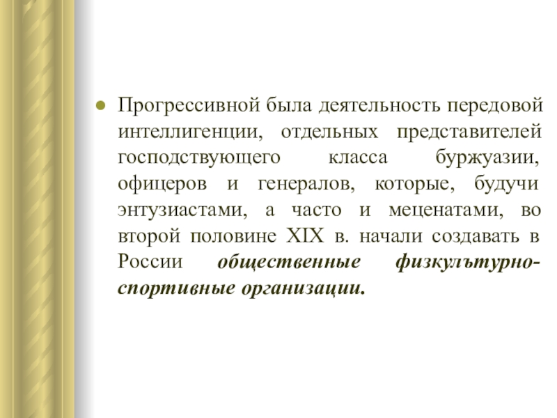 и генералов, которые, будучи энтузиастами, а часто и меценатами, во второй половине XIX в. начали создавать в России общественные физкулътурно-спортивные организации.