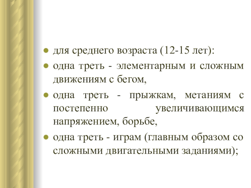 одна треть - прыжкам, метаниям с постепенно увеличивающимся напряжением, борьбе,