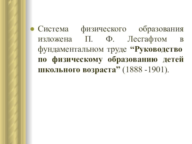 Слайд 7Петр Францевич Лесгафт – создатель отечественной системы физического воспитания (образования). Его
