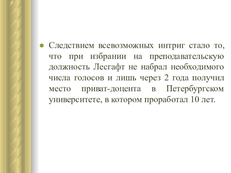 Следствием всевозможных интриг стало то, что при избрании на преподавательскую должность