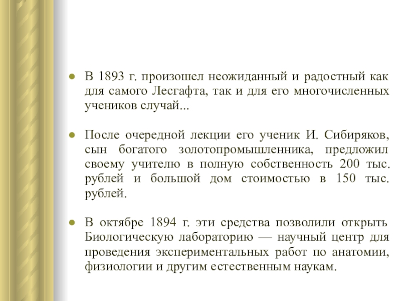 В 1893 г. произошел неожиданный и радостный как для самого Лесгафта,