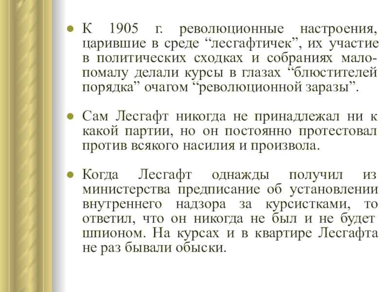 К 1905 г. революционные настроения, царившие в среде “лесгафтичек”, их участие