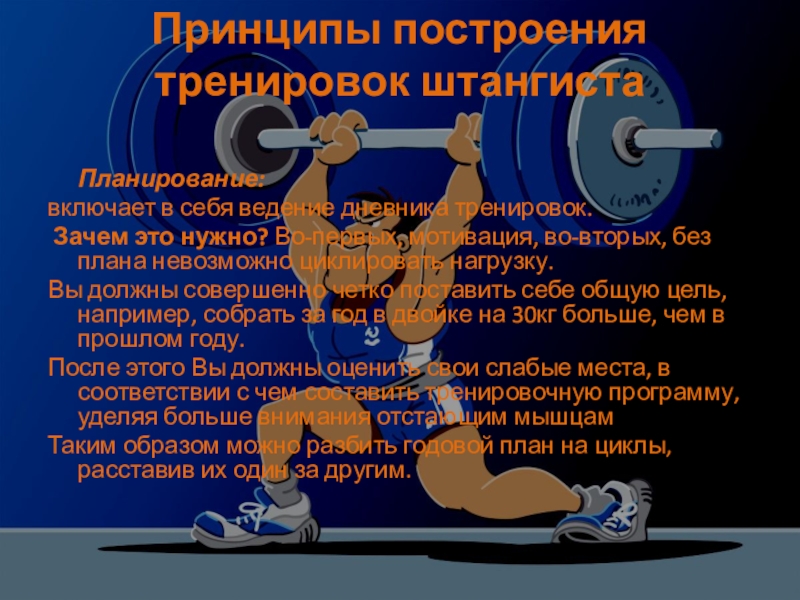 Вы должны совершенно четко поставить себе общую цель, например, собрать за год в двойке на 30кг больше, чем в прошлом году.