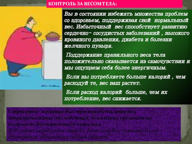 КОНТРОЛЬ ЗА ВЕСОМ ТЕЛА: