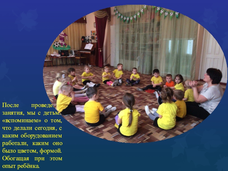 Слайд 12После проведения занятия, мы с детьми «вспоминаем» о том, что делали