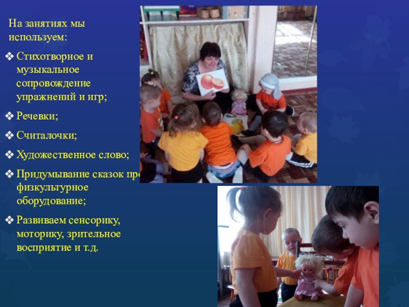 Стихотворное и музыкальное сопровождение упражнений и игр;