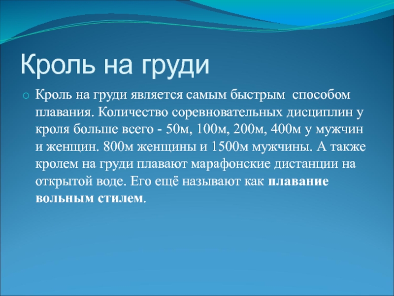 Слайд 3Кроль на груди