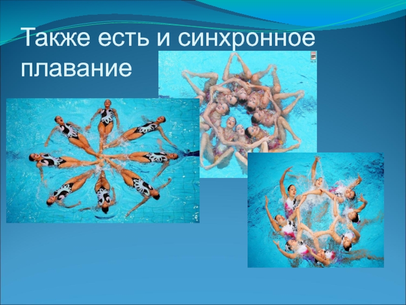Слайд 11Также есть и синхронное плавание