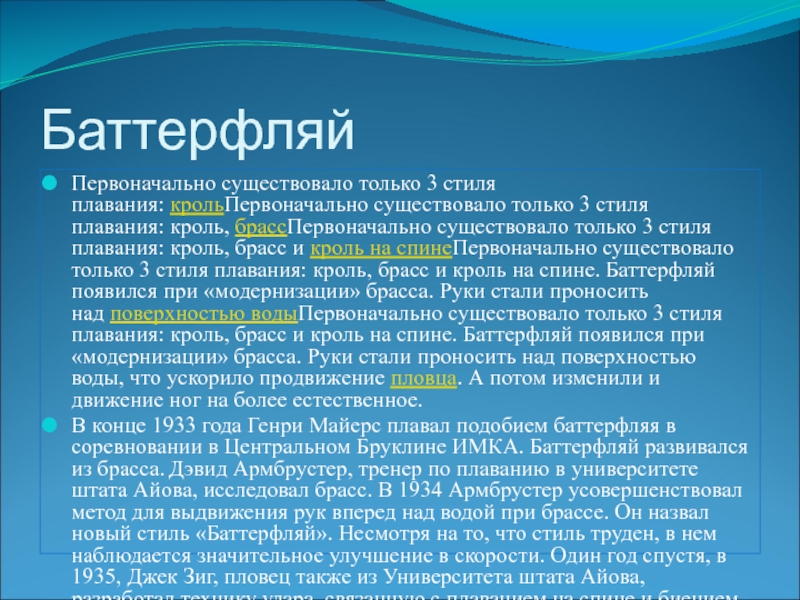 Баттерфляй- один из наиболее технически сложных и утомительных стилей плаванияБаттерфляй- один из наиболее
