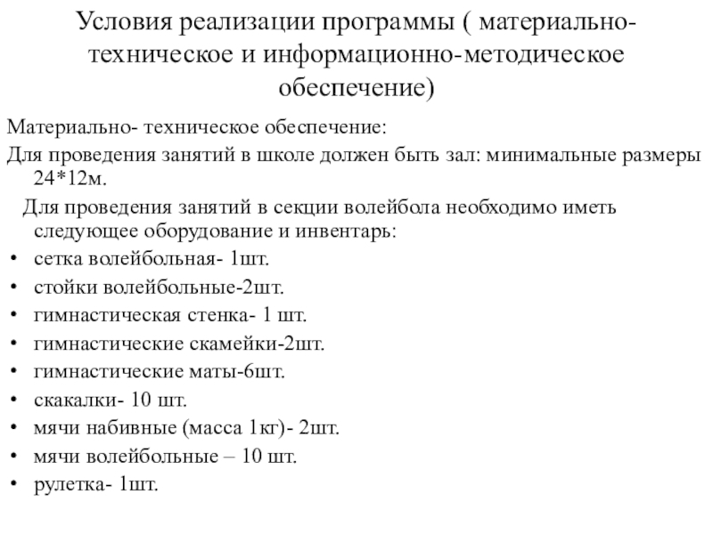 Слайд 6Условия реализации программы ( материально-техническое и информационно-методическое обеспечение)