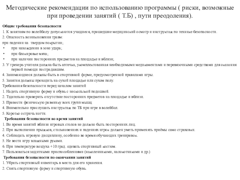 Слайд 13Методические рекомендации по использованию программы ( риски, возможные при проведении занятий