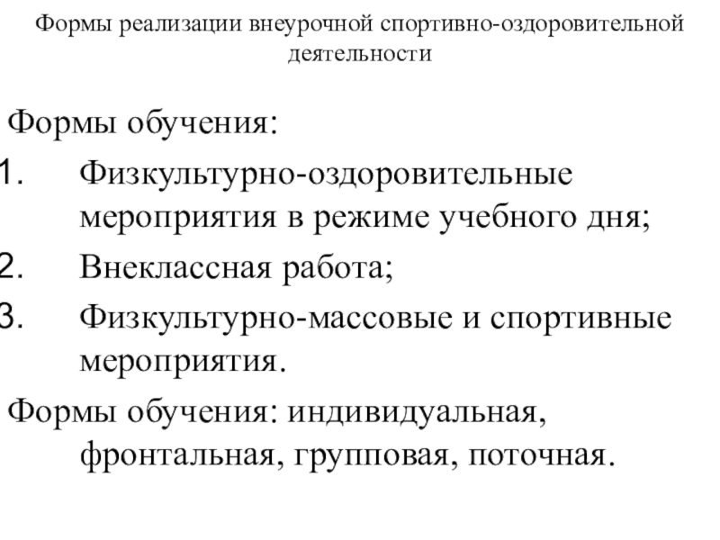 Слайд 9Формы реализации внеурочной спортивно-оздоровительной деятельности