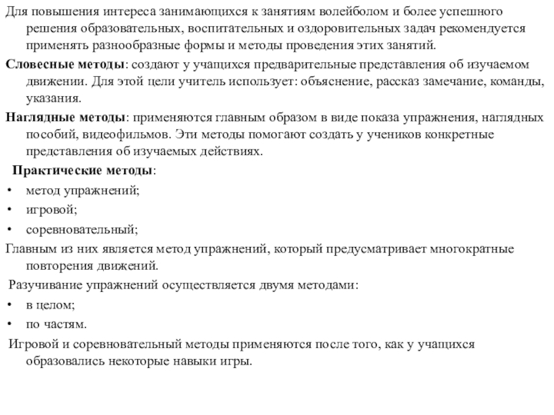 Слайд 12Для повышения интереса занимающихся к занятиям волейболом и более успешного решения