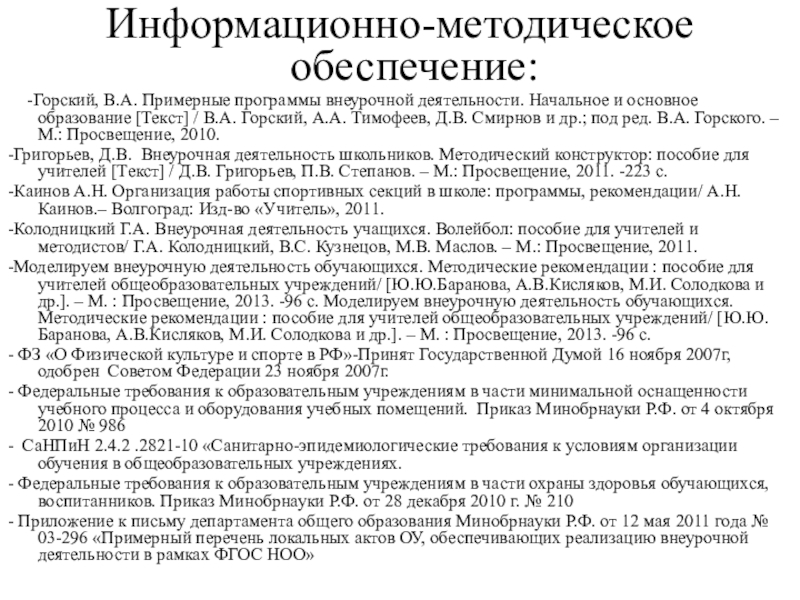 -Колодницкий Г.А. Внеурочная деятельность учащихся. Волейбол: пособие для учителей и методистов/ Г.А. Колодницкий, В.С. Кузнецов, М.В. Маслов. – М.: Просвещение, 2011.