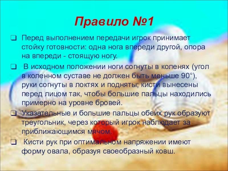 Перед выполнением передачи игрок принимает стойку готовности: одна нога впереди