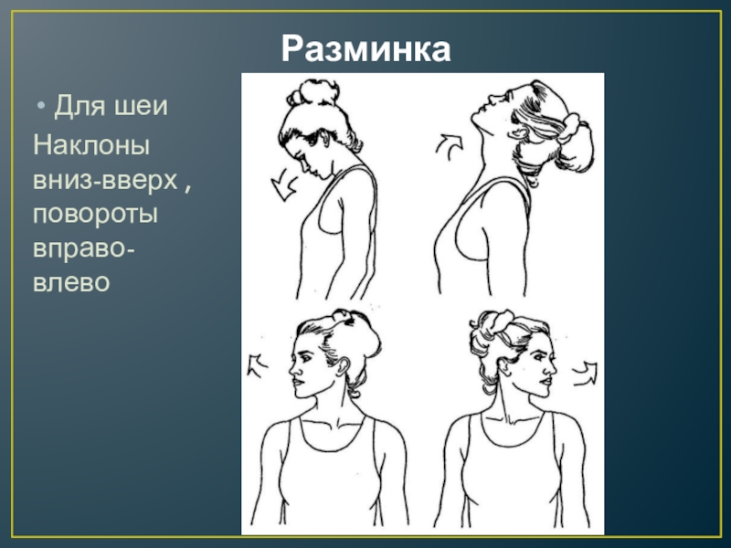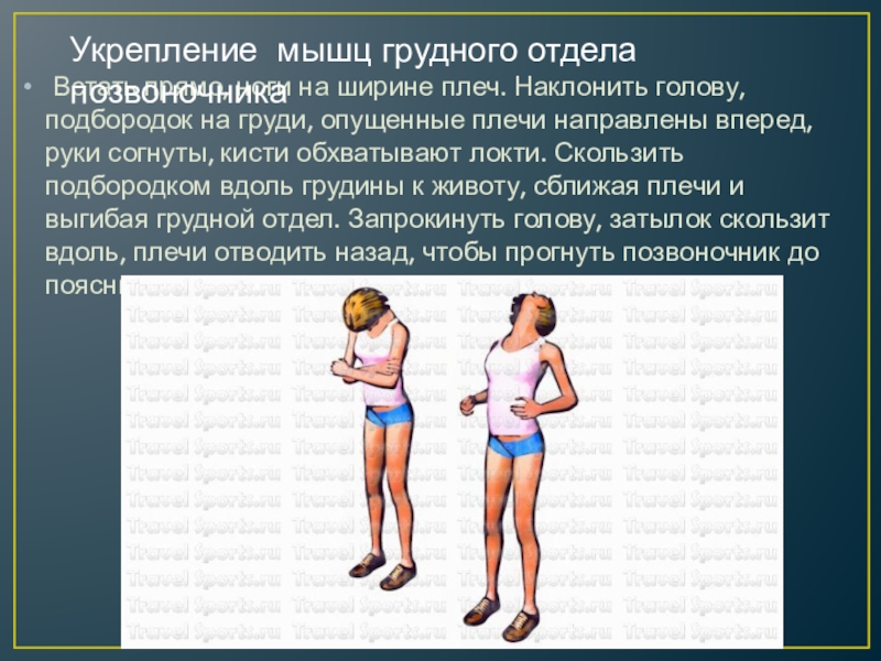 Слайд 16 Встать прямо, ноги на ширине плеч. Наклонить голову, подбородок на