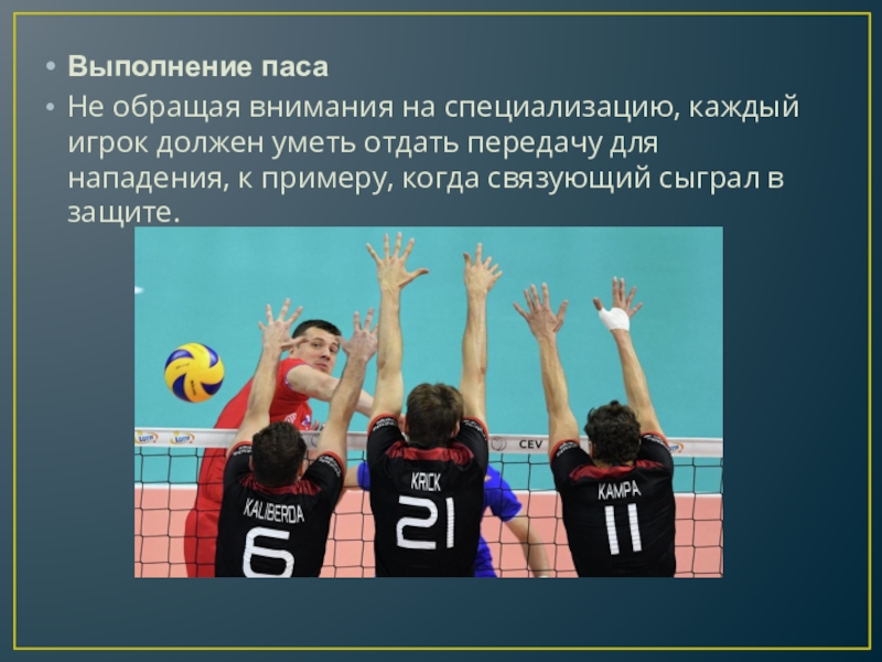 передачу для нападения, к примеру, когда связующий сыграл в защите.