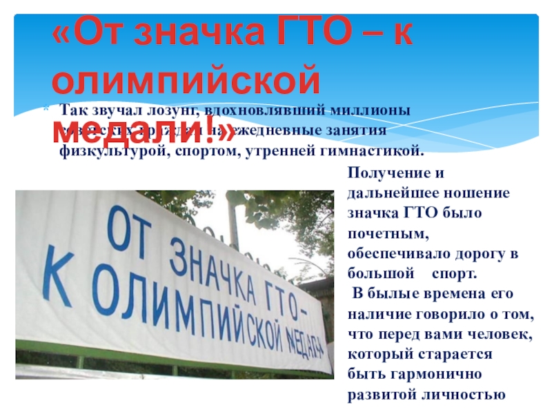 Получение и дальнейшее ношение значка ГТО было почетным, обеспечивало дорогу в большой спорт.