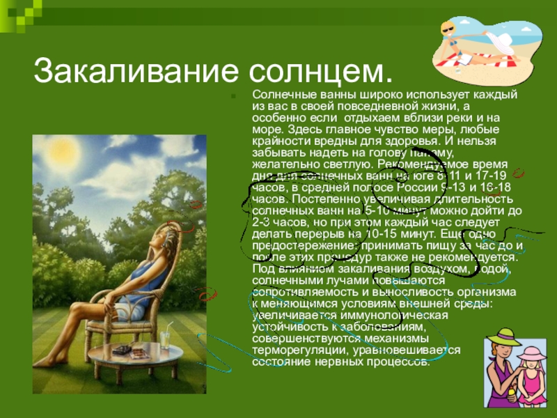 Слайд 10Закаливание солнцем.