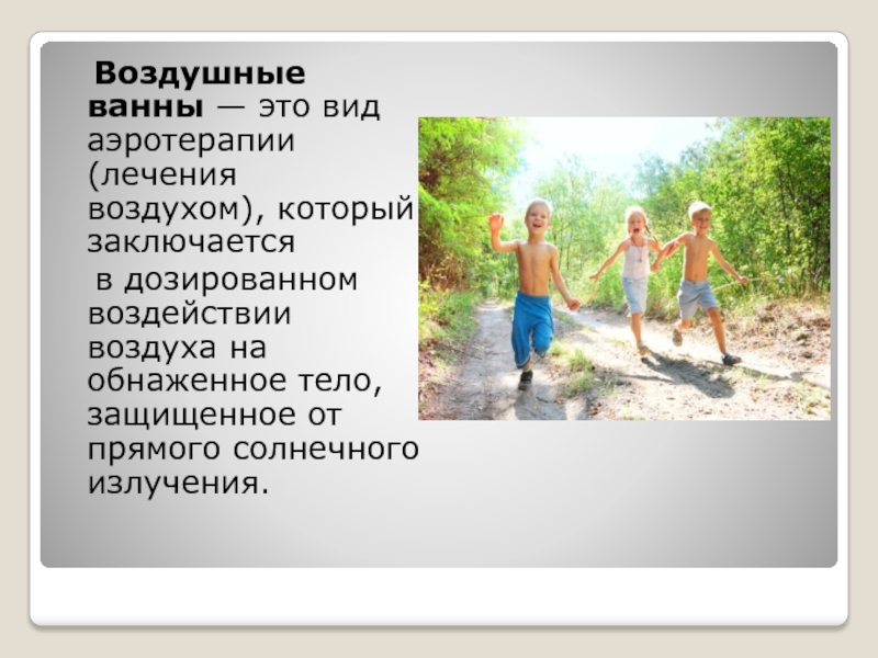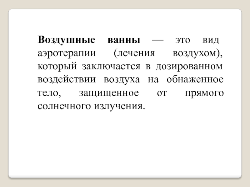 Слайд 3Воздушные ванны — это вид аэротерапии (лечения воздухом), который заключается в