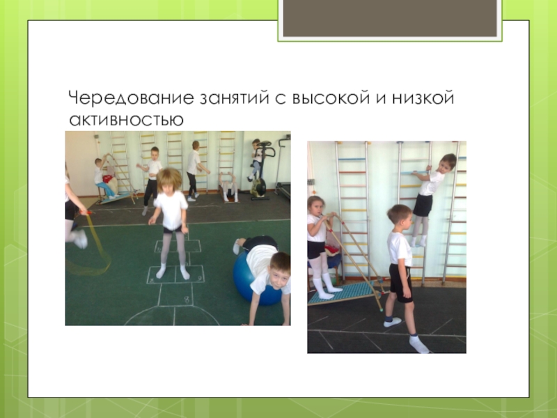 Слайд 13Чередование занятий с высокой и низкой активностью