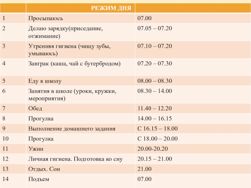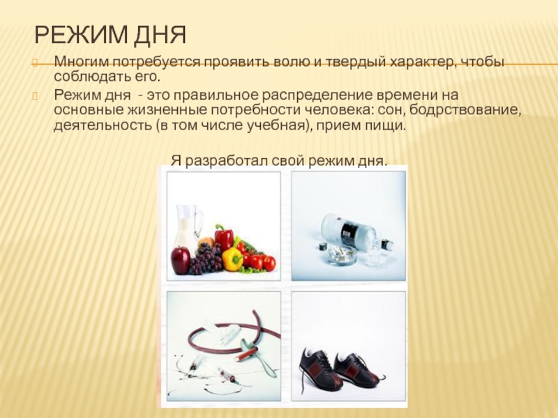 Режим дняМногим потребуется проявить волю и твердый характер, чтобы соблюдать его.Режим дня - это правильное распределение времени