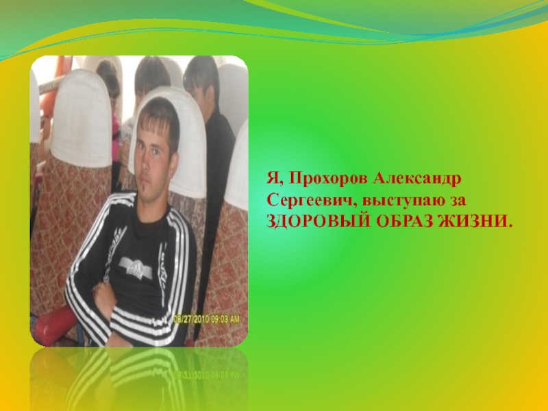 Слайд 2Я, Прохоров Александр Сергеевич, выступаю за ЗДОРОВЫЙ ОБРАЗ ЖИЗНИ.