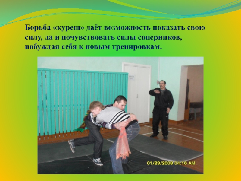 Слайд 11Борьба «куреш» даёт возможность показать свою силу, да и почувствовать силы