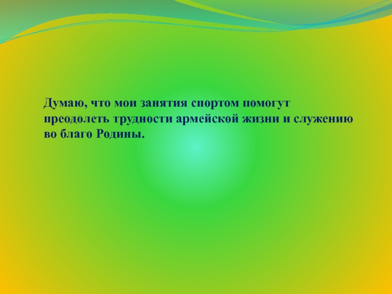 Слайд 18Думаю, что мои занятия спортом помогут преодолеть трудности армейской жизни и