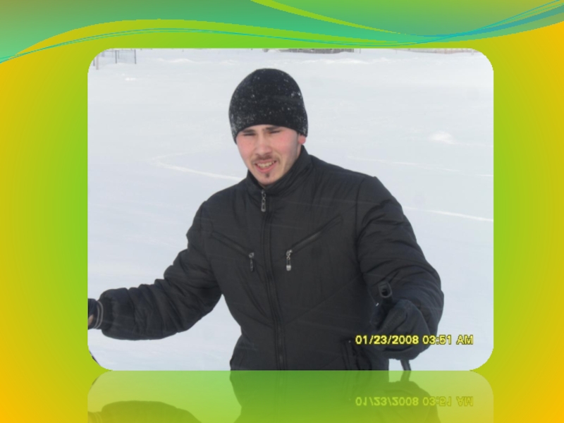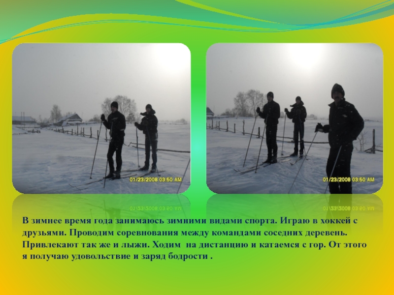 Слайд 13В зимнее время года занимаюсь зимними видами спорта. Играю в хоккей