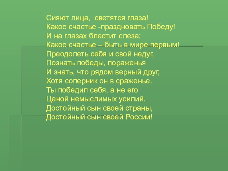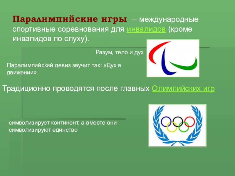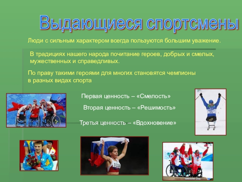 Он на практике доказал, что спорт для людей с физическими недостатками создаёт условия для успешной жизнедеятельности, восстанавливает психическое равновесиеОн на практике доказал, что спорт для людей с физическими недостатками создаёт условия для успешной жизнедеятельности, восстанавливает психическое равновесие, позволяет вернуться к полноценной жизни независимо от физических недостатков, укрепляет физическую силу.