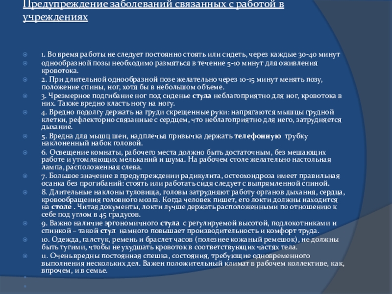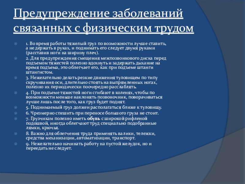 Слайд 3Предупреждение заболеваний связанных с физическим трудом