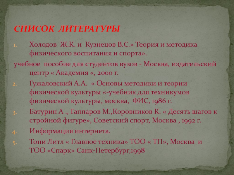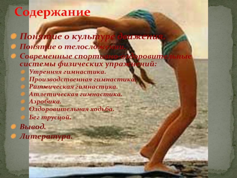Современные спортивно-оздоровительные системы физических упражнений по формированию культуры движений и телосложения.