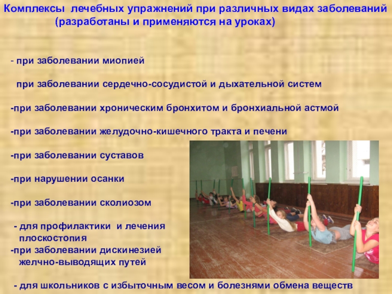 Овладение комплексами упражнений, благоприятно воздействующими на состояние организма учащегося с учетом имеющегося у него заболевания