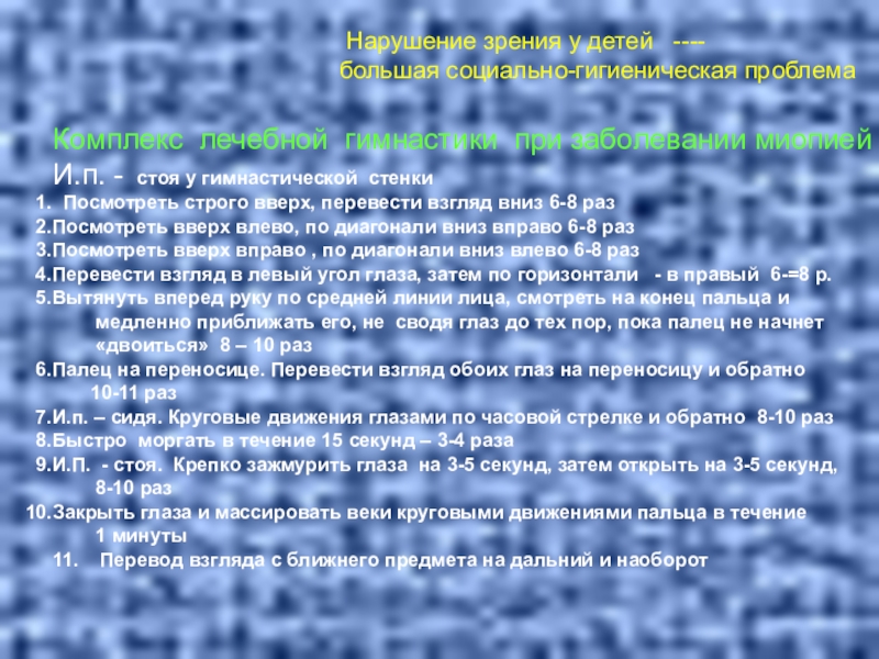 Комплекс лечебной гимнастики при заболевании миопией