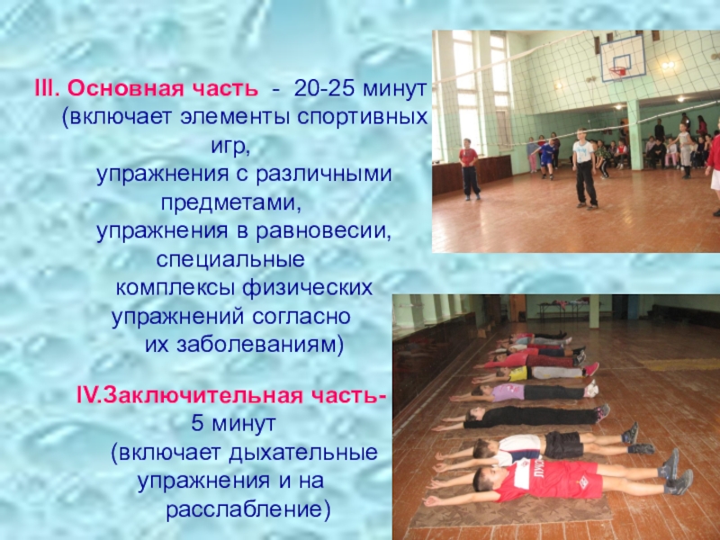Практическое выполнение методик по коррекции заболеваний (выполнение комплексов оздоровительной направленности) – до 13 минут