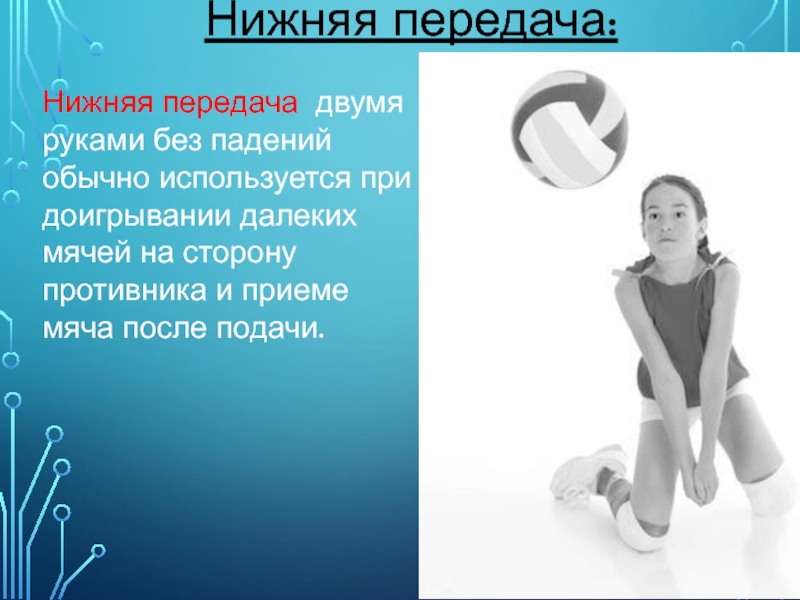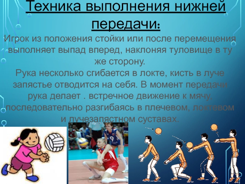 Техника выполнения нижней передачи: