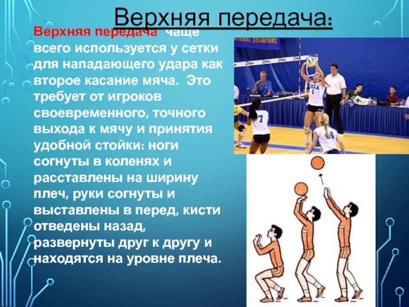 Техника выполнения верхней передачи: