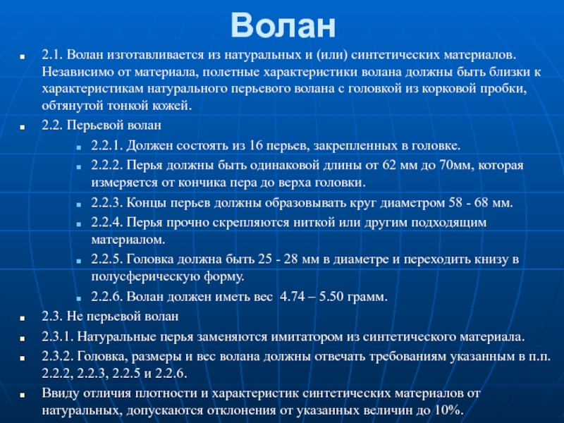 2.1. Волан изготавливается из натуральных и (или) синтетических материалов. Независимо от