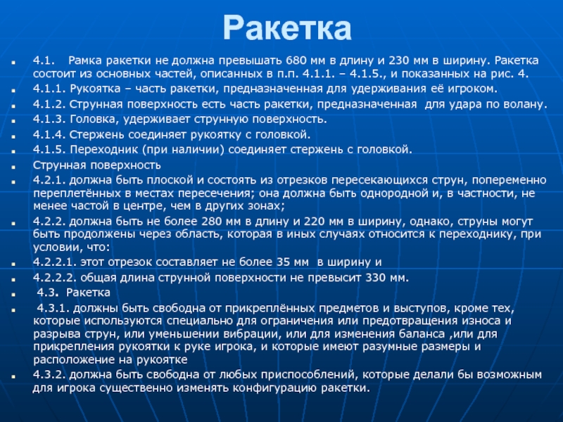 4.1. Рамка ракетки не должна превышать 680 мм в длину и