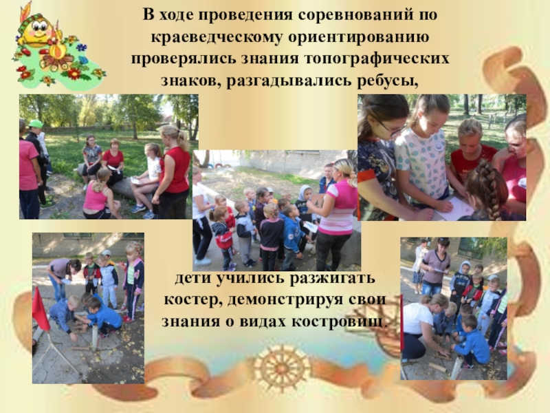 дети учились разжигать костер, демонстрируя свои знания о видах костровищ.