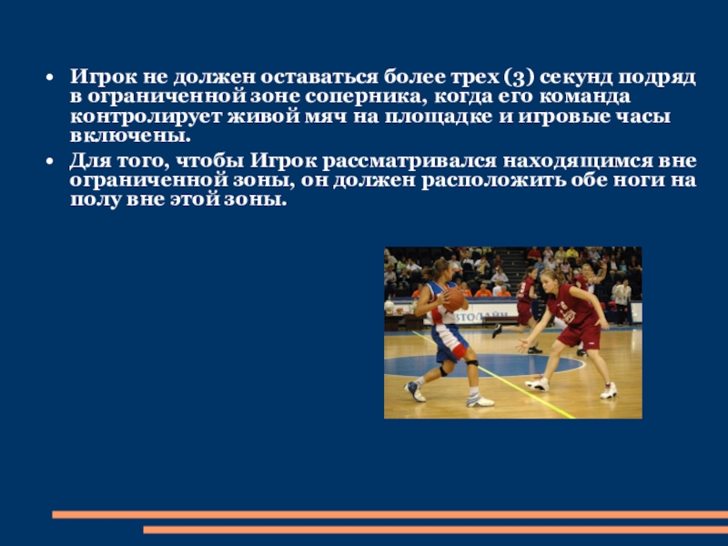 Игрок не должен оставаться более трех (3) секунд подряд в
