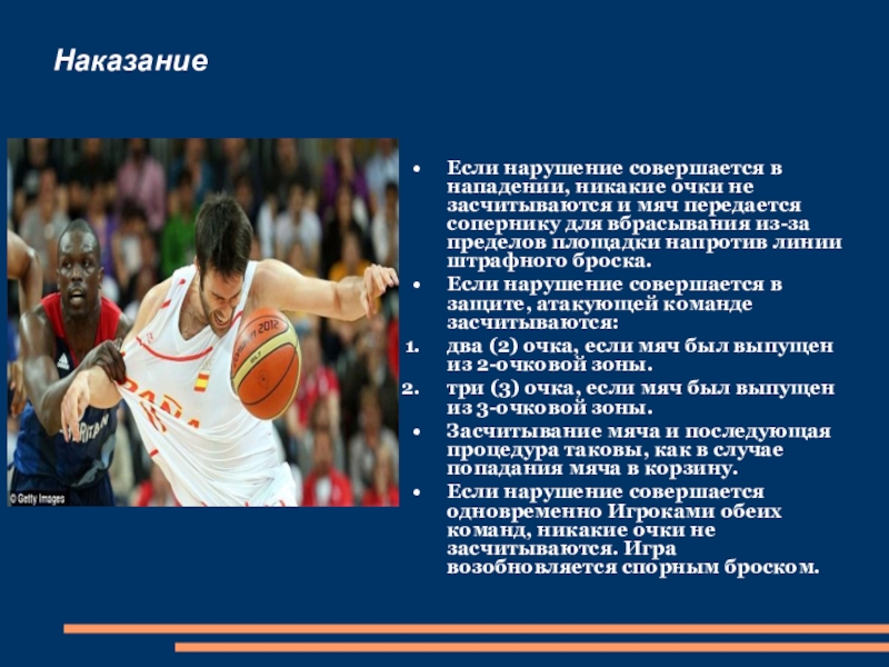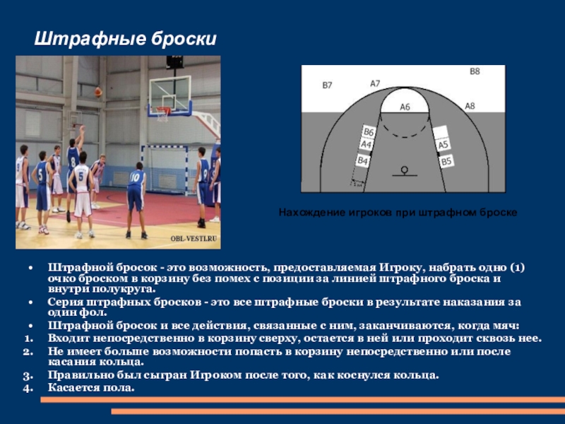 За мяч, заброшенный со штрафного броска, засчитывается одно (1) очко.