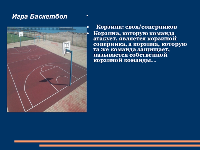 а корзина, которую та же команда защищает, называется собственной корзиной команды. .