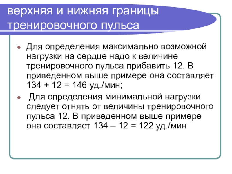 Слайд 6верхняя и нижняя границы тренировочного пульса