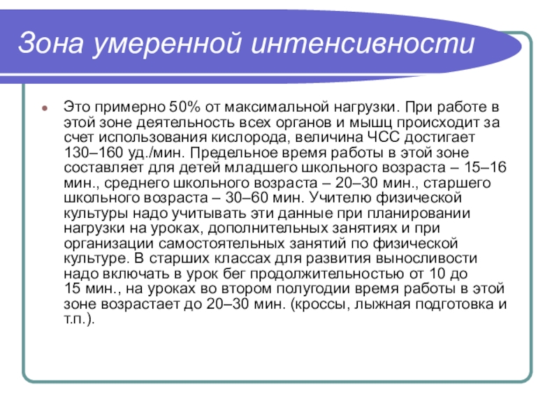 Слайд 13Зона умеренной интенсивности